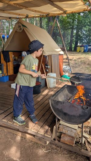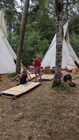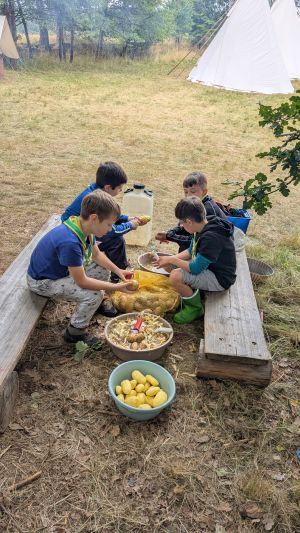 Neděle 20.7. (Příjezd vlčat a světlušek, dostavba tábora)